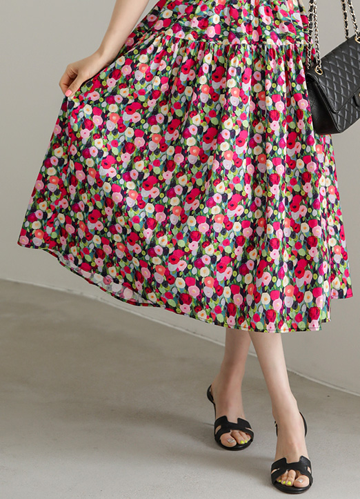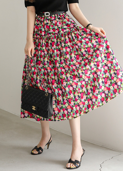 ビビッドカラーフラワープリントフレアスカート sk25803