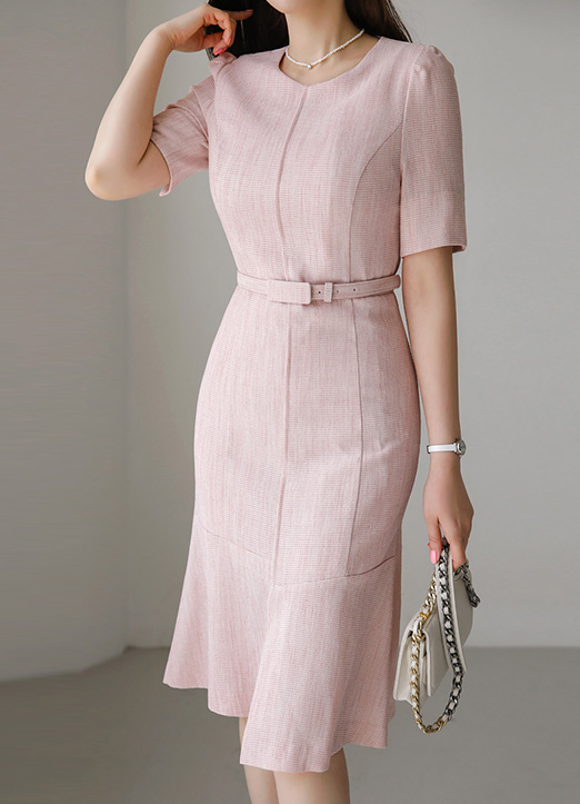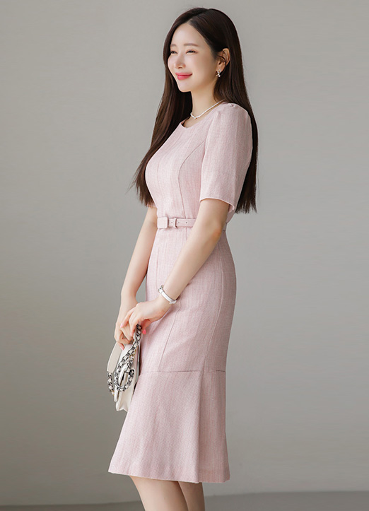 ウエストベルトSETツイードスリムマーメイドワンピース op25843