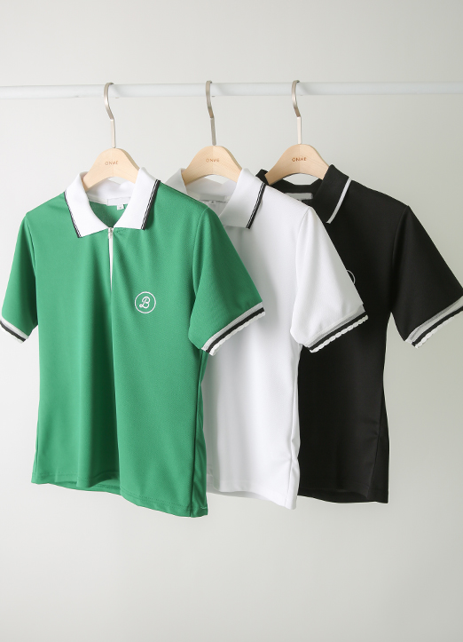 [QoG] ロゴ刺繍ハーフジップポロシャツTシャツ ts25999