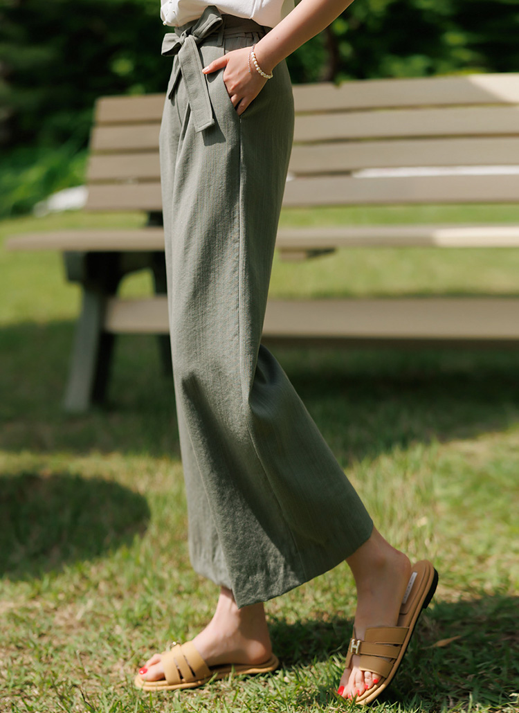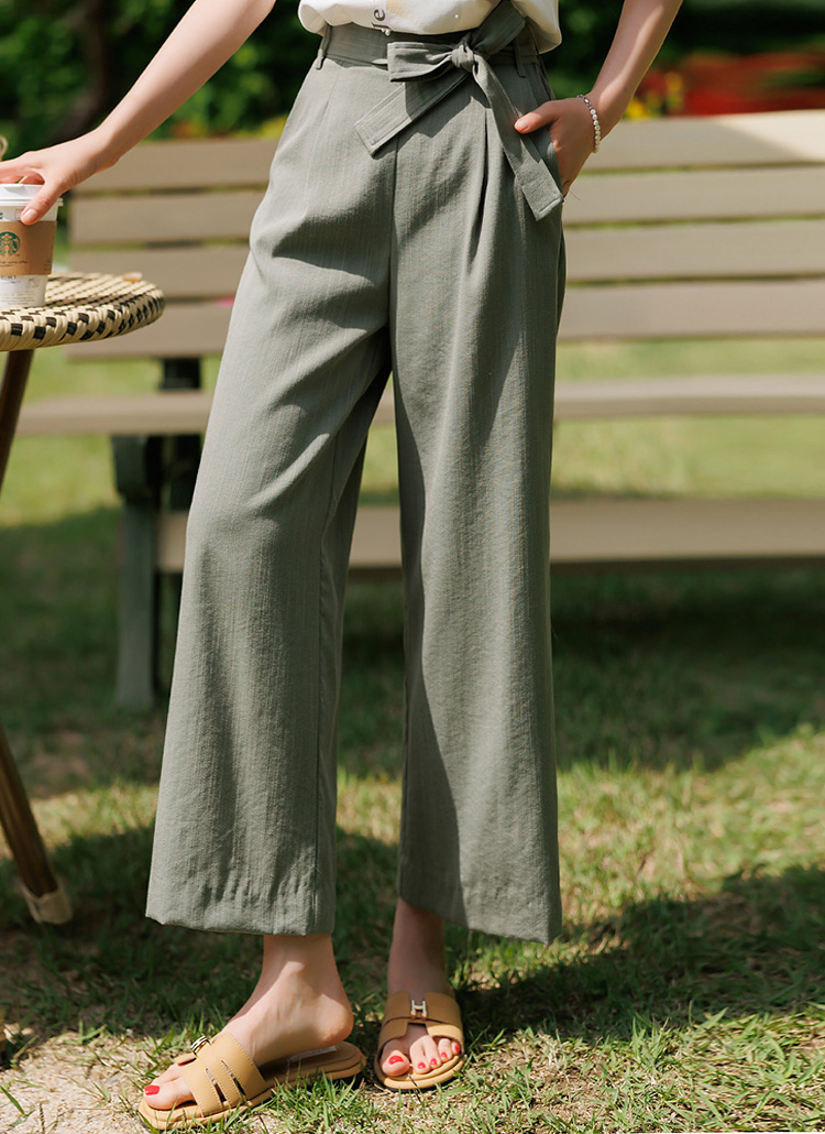 발목이 드러나는 8부 기장으로 시원하고 산뜻하게 연출되고
