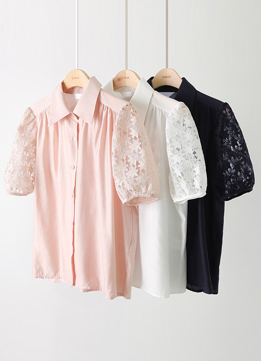 레이스 퍼프 소매가 볼륨감있게 살아 러블리한 블라우스에요 :)
