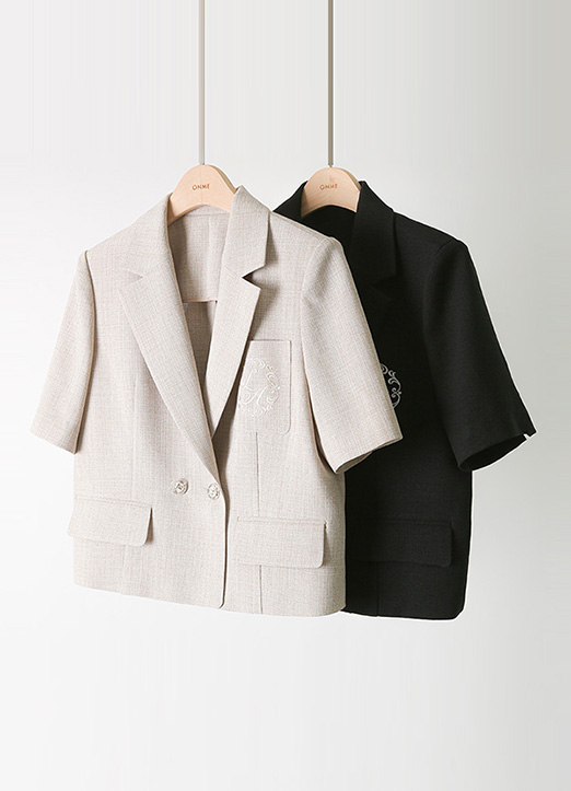[Louis Angel] リネンライクイニシャル刺繍ロゴ半袖サマージャケット jk26271