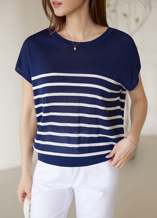 キャップスリーブボーダーニットプルオーバー nt26371