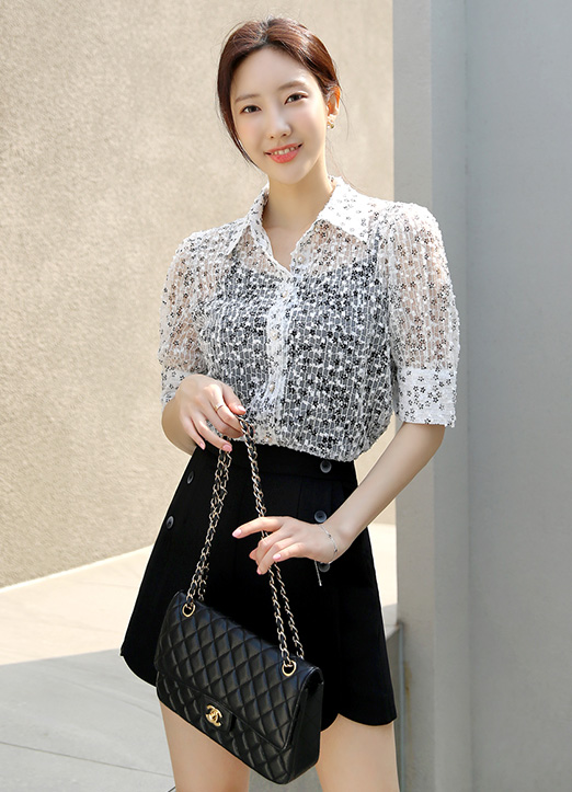 [Louis Angel] シースルーフラワーチュールレースブラウス bl26499