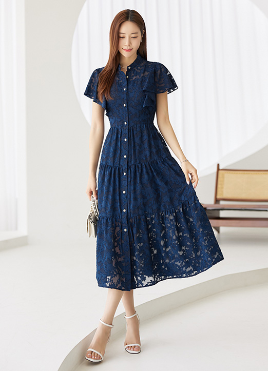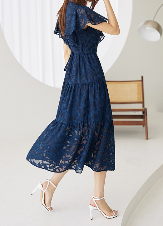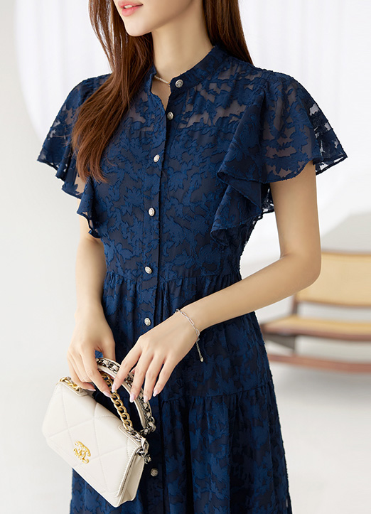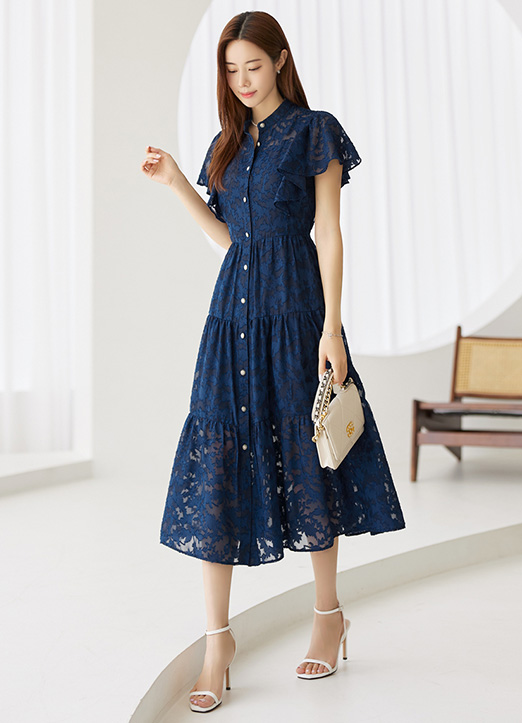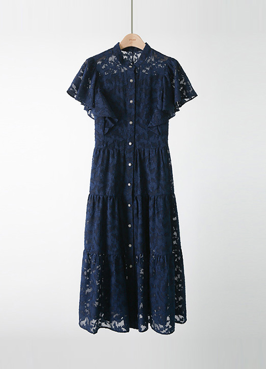 [Louis Angel] フリルスリーブシースルーフラワーレースワンピース op26607