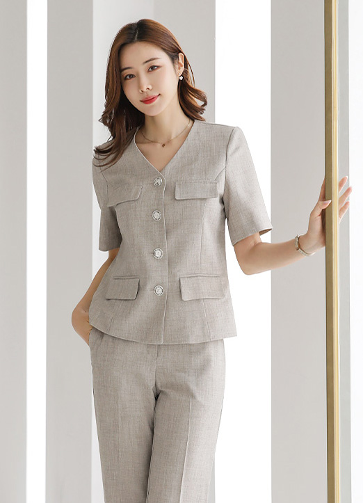 살짝 고시감이 있는 원단이라 더 반듯하고 슬림하게 잘 잡혀진 실루엣으로