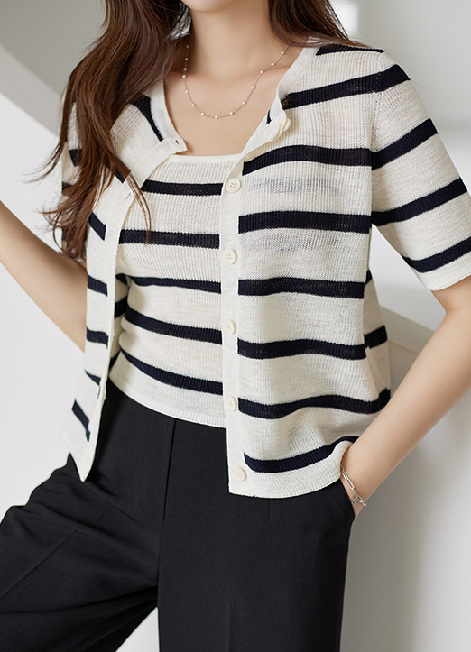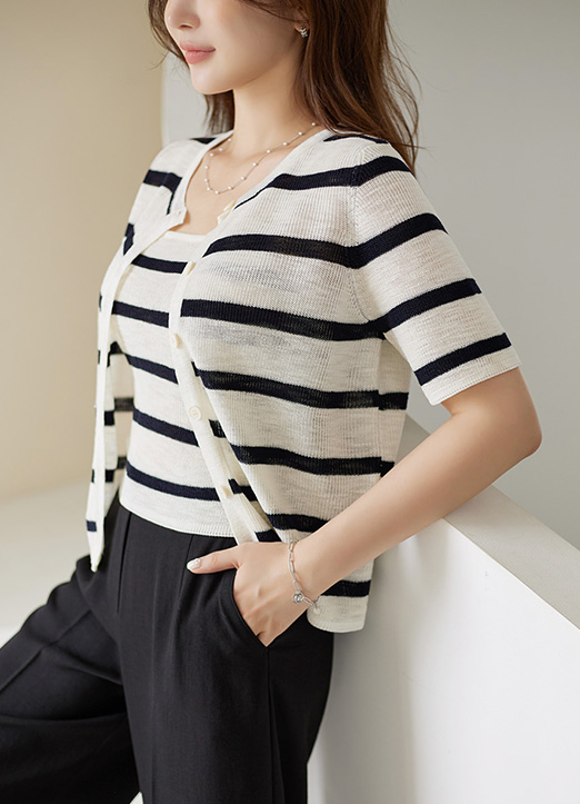 【セットアップ特価】 サマーボーダーニットキャミソール&半袖カーディガンセット SET27115