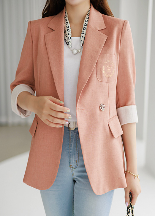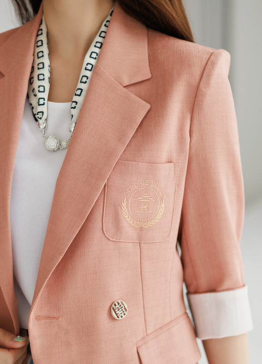 リネンライクロゴ刺繍ポイントサマージャケット jk27391