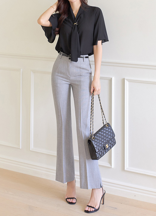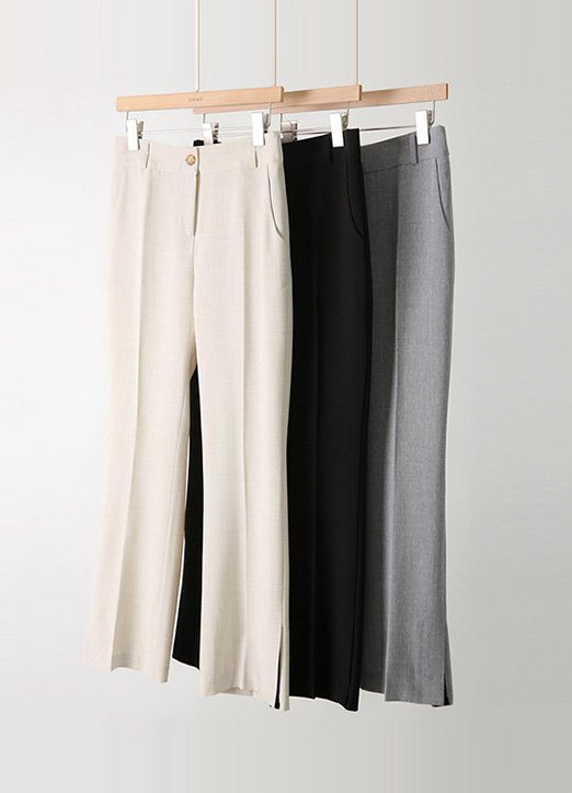 아래로 풀어지는 부츠컷 라인에 트임이 더해져