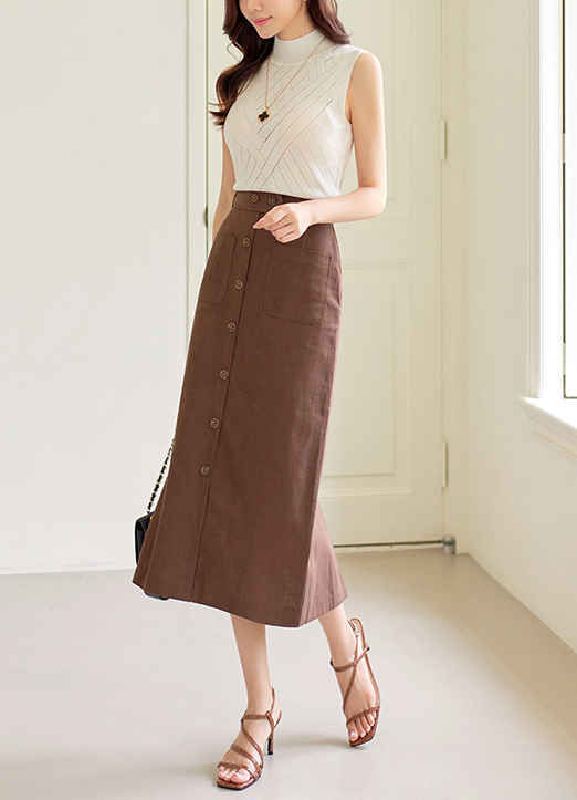 린넨 100% 고급소재로 제작된 H라인 스커트에요