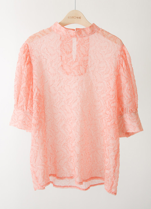 [Louis Angel] マーブルプリントリンクルジャガードシフォンブラウス bl28026