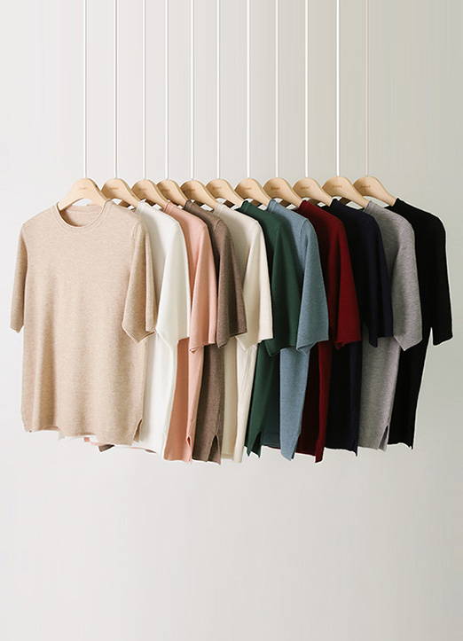 【11色展開】ソフトタッチビスコース半袖ラウンドニット nt28114