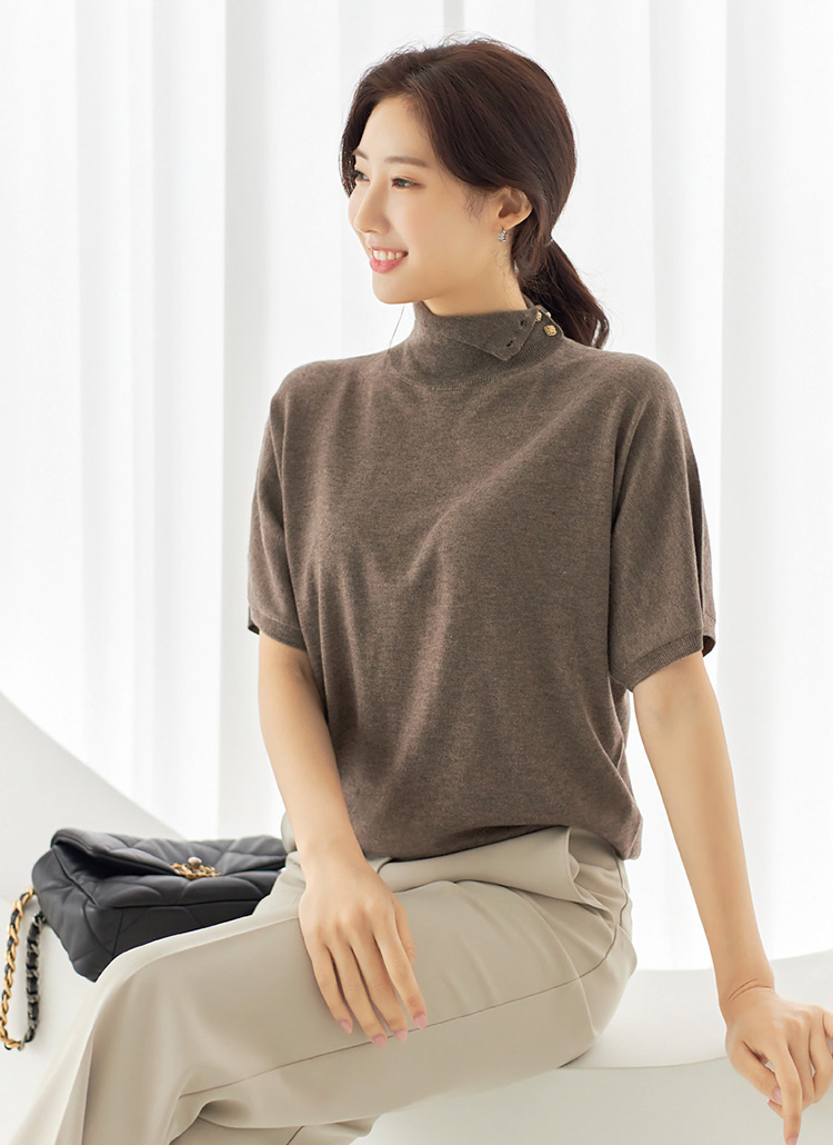 골드버튼이 더해진 폴라넥이 고급스러운 니트에요 :)