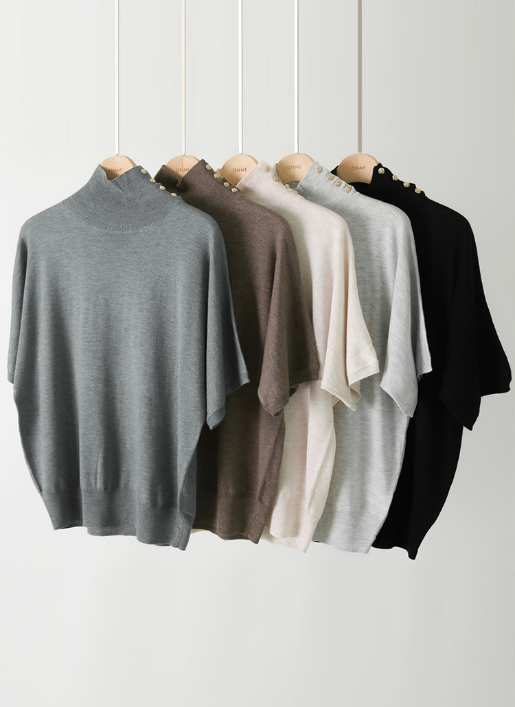 【5色展開】ゴールドボタンポイントハイネックビスコースルーズニット nt28138