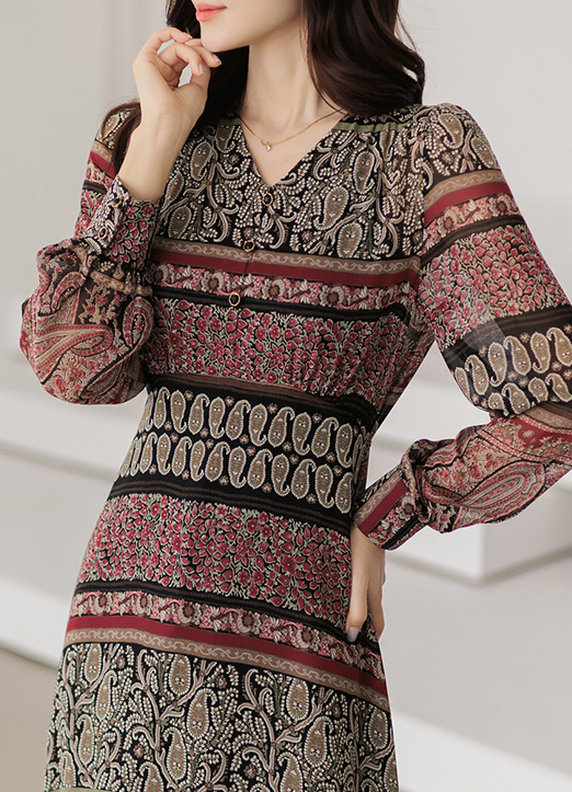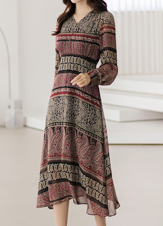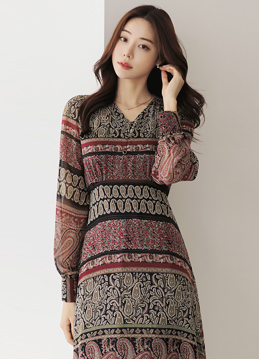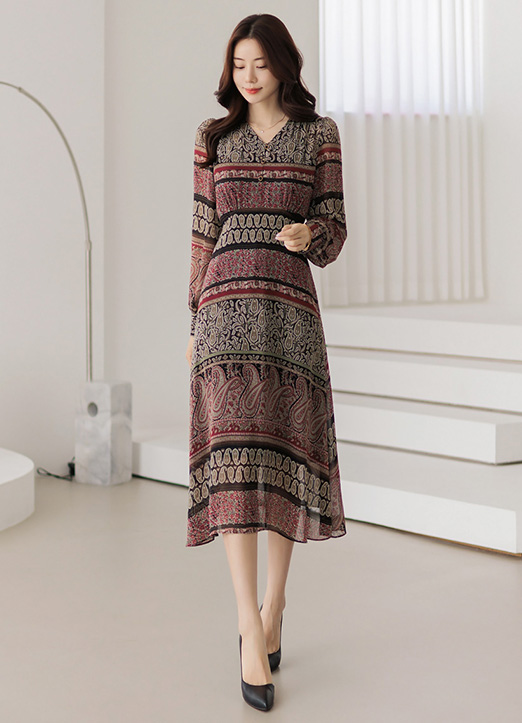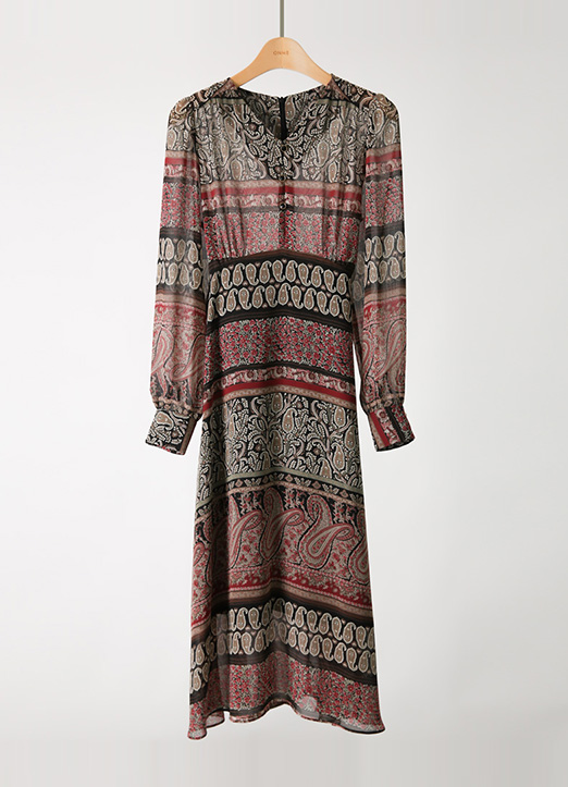 [Louis Angel] ペーズリー柄アシメフレアロングシアーワンピース op28150