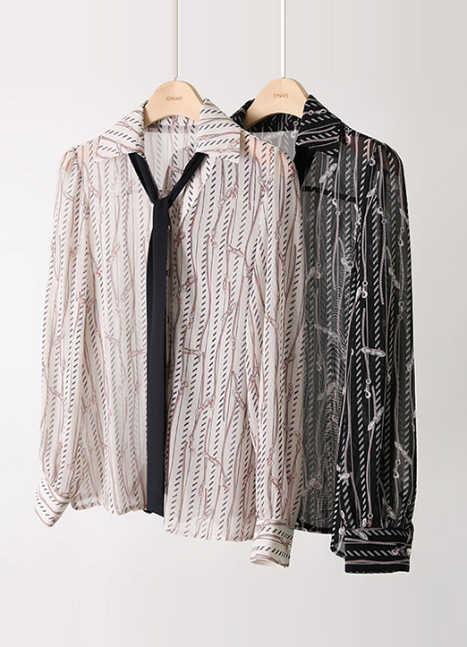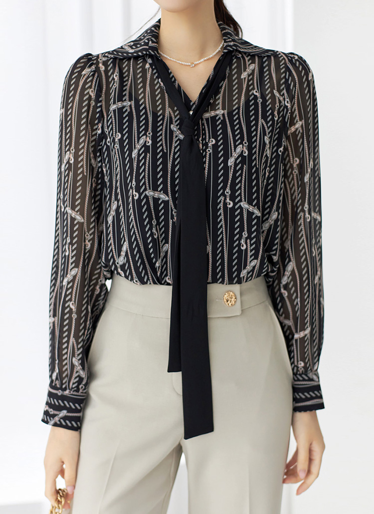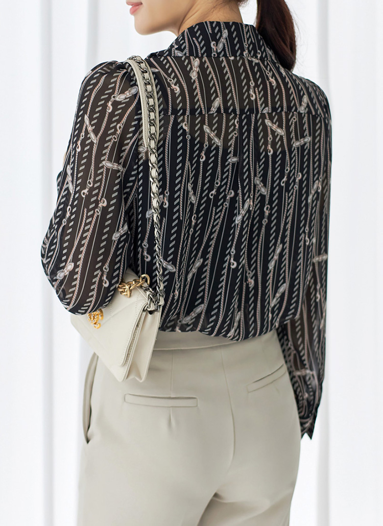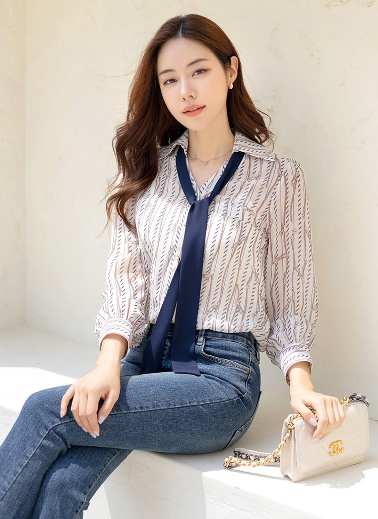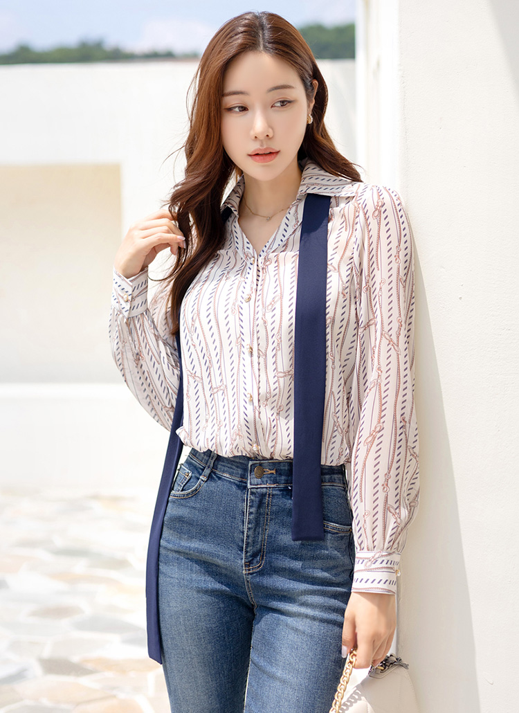 [Louis Angel] リボンタイ付きオープンカラーチェーン柄ブラウス bl28230