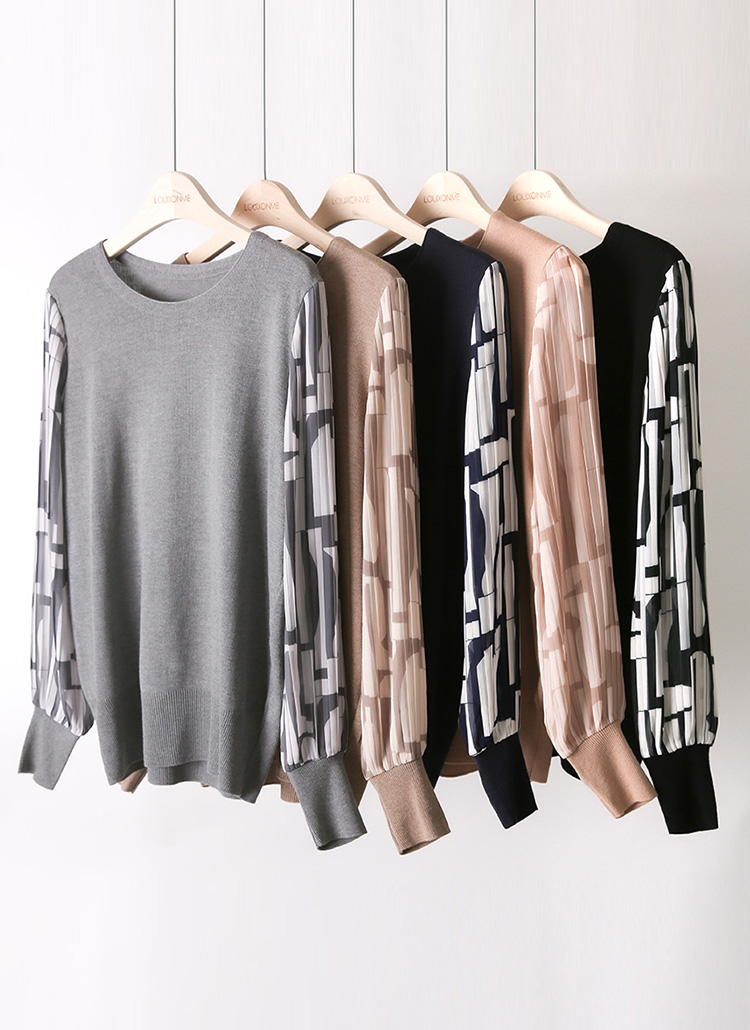 패턴이 더해진 플리츠 쉬폰 소매로 우아함을 더한 블라우스 니트에요 :)