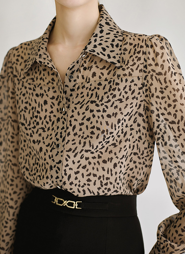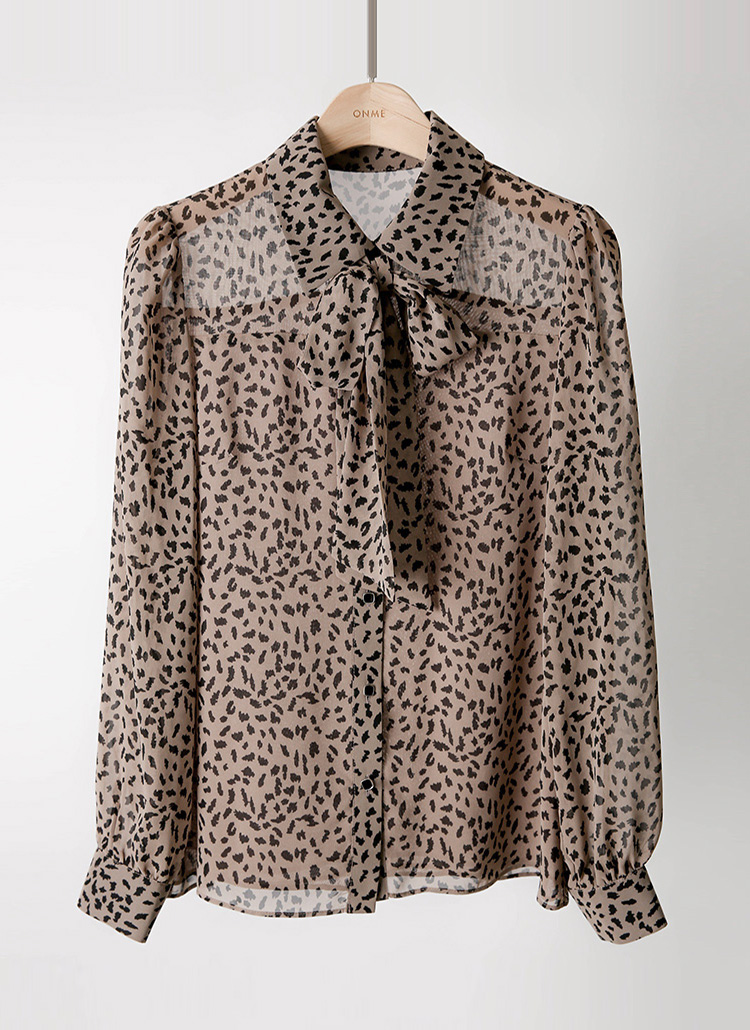 [Louis Angel] 2WAYリボンタイ付きレオパードシアーブラウス bl28346