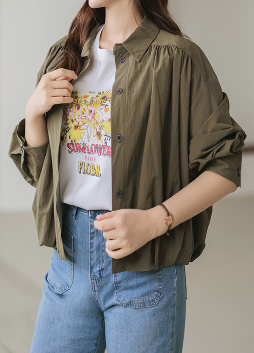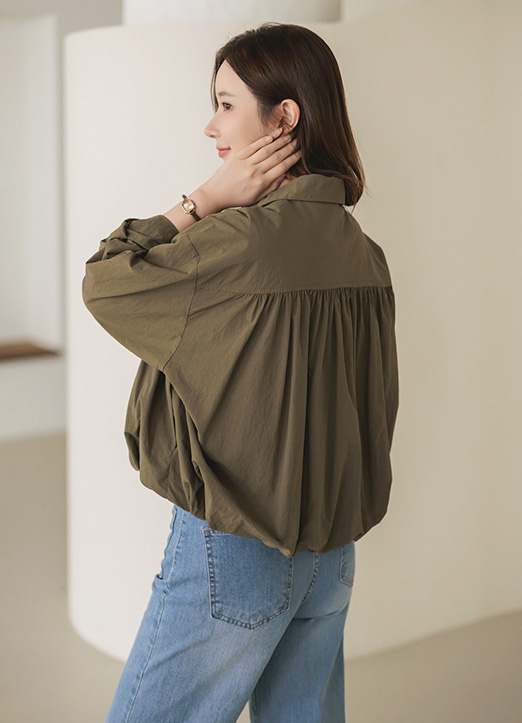 셔링이 자잘하게 잡혀 루즈한 핏이 연출되고