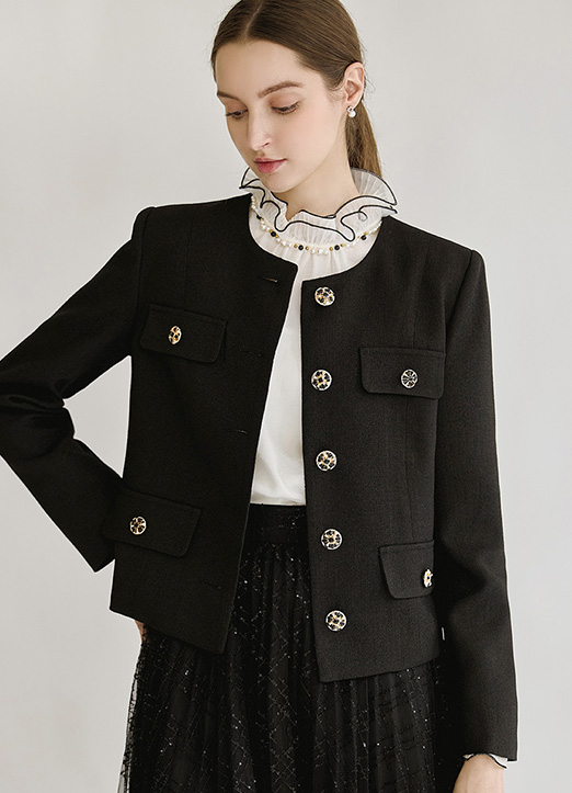 [루이스엔젤] 세린즈 엘레강스 골드 버튼 노카라 세미 크롭 자켓★