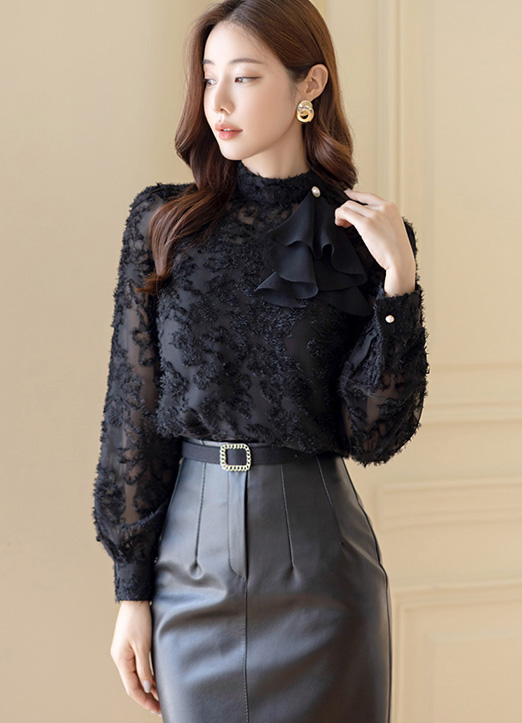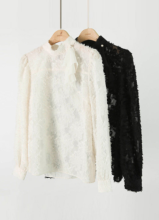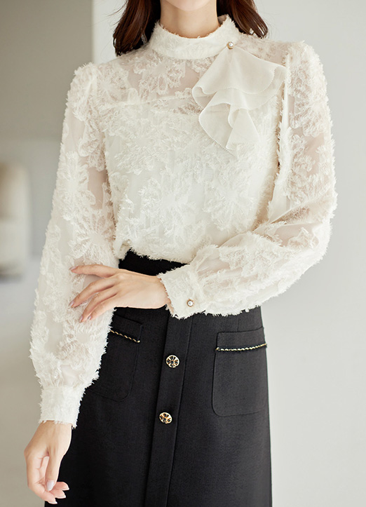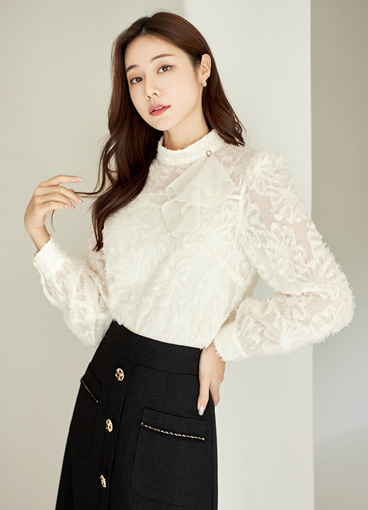 [LouisAngel] 2WAYコサージュ付きフラワーシャギージャガードシフォンブラウス bl28530