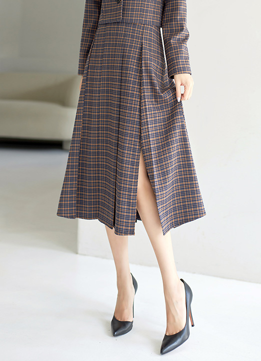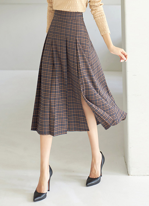 [LouisAngel] サイドスリットチェック柄プリーツスカート sk28694