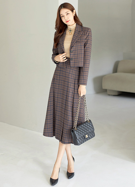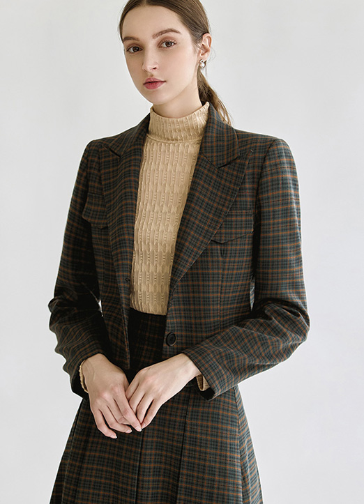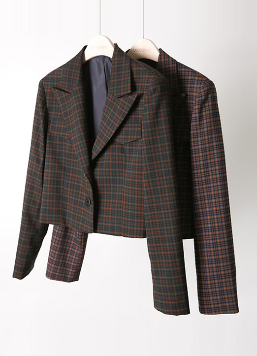 [LouisAngel] セミクロップドチェック柄テーラードジャケット jk28698