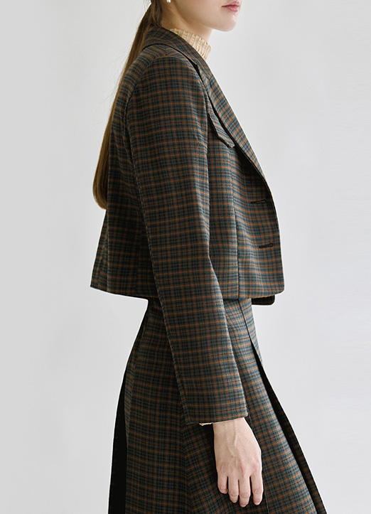 [LouisAngel] セミクロップドチェック柄テーラードジャケット jk28698