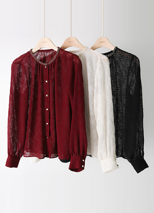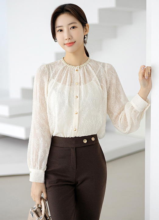 [LouisAngel] ドット柄レースジャガードシアーブラウス bl28706