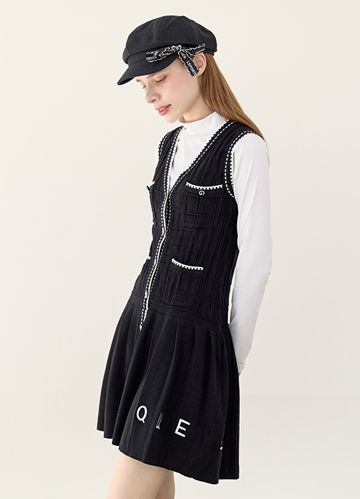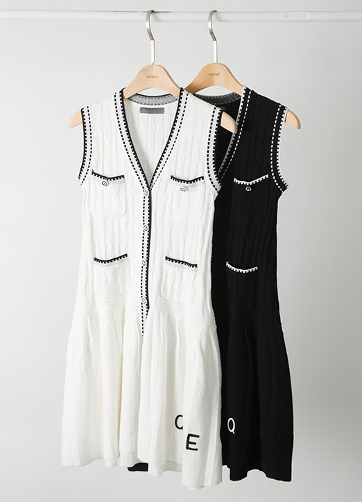 [QoG] バ配色ライン ノースリーブⅤネックニットワンピース op28782