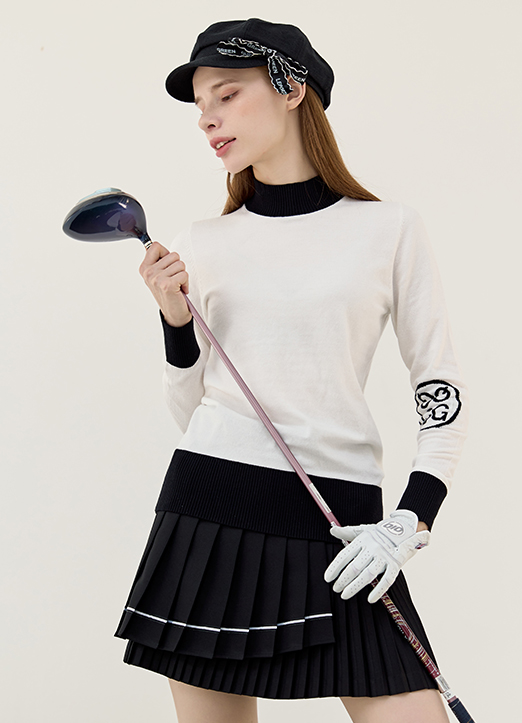 [QoG] ロゴポイントバイカラーハイネックニット nt28822