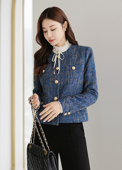 ゴールド釦ノーカラーラメツイードジャケット jk28906