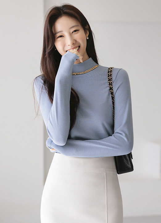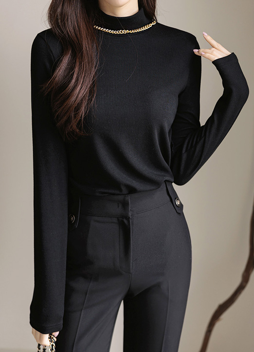 [LouisAngel] 2WAYネックレース付きリブハイネックTシャツ ts28914