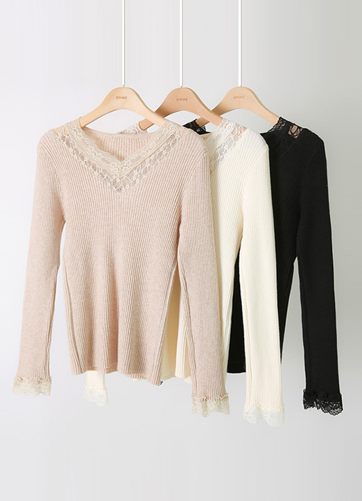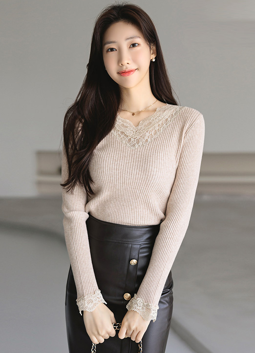 네크라인과 소맷단에 레이스를 배색해주어