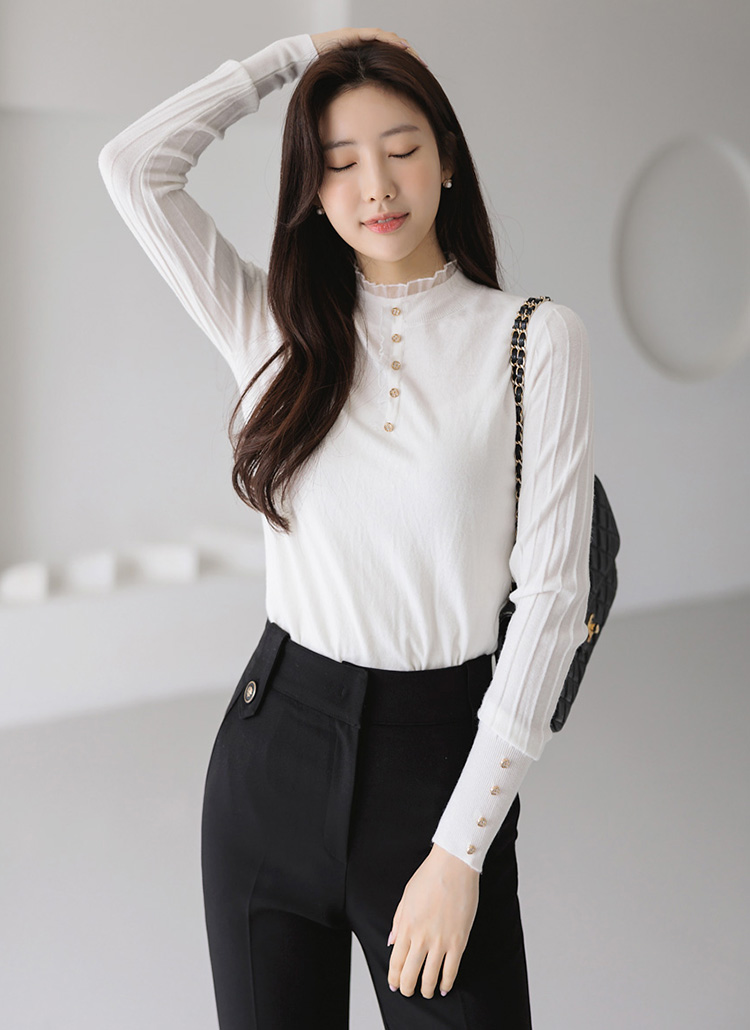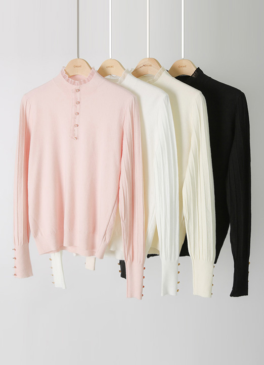쉬폰 프릴이 배색된 포근포근 니트 위에