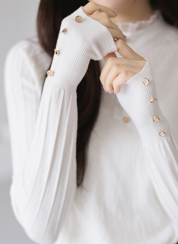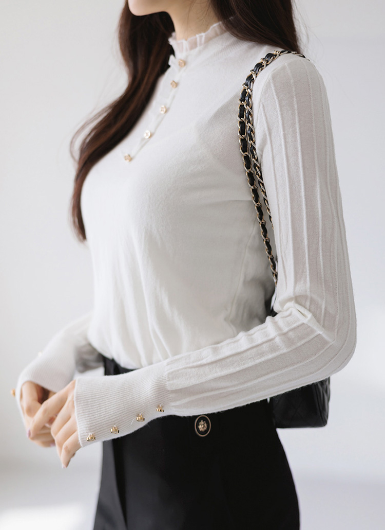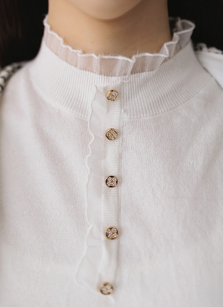 ゴールド釦フリルネックニットプルオーバー nt28970