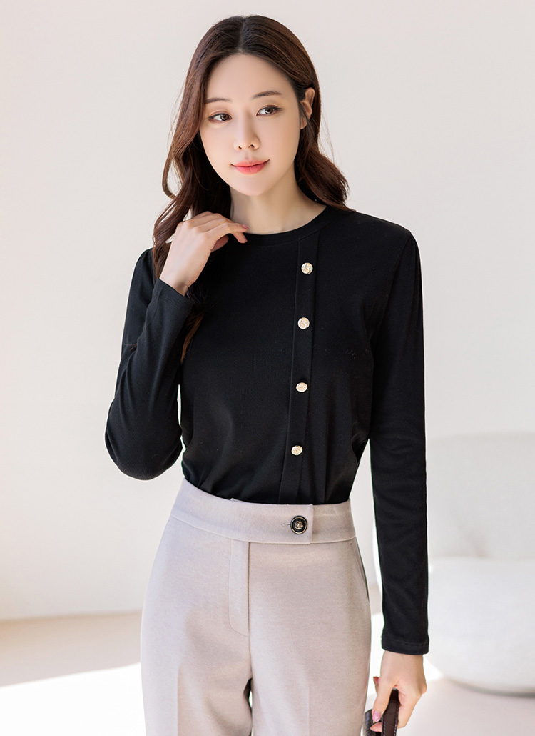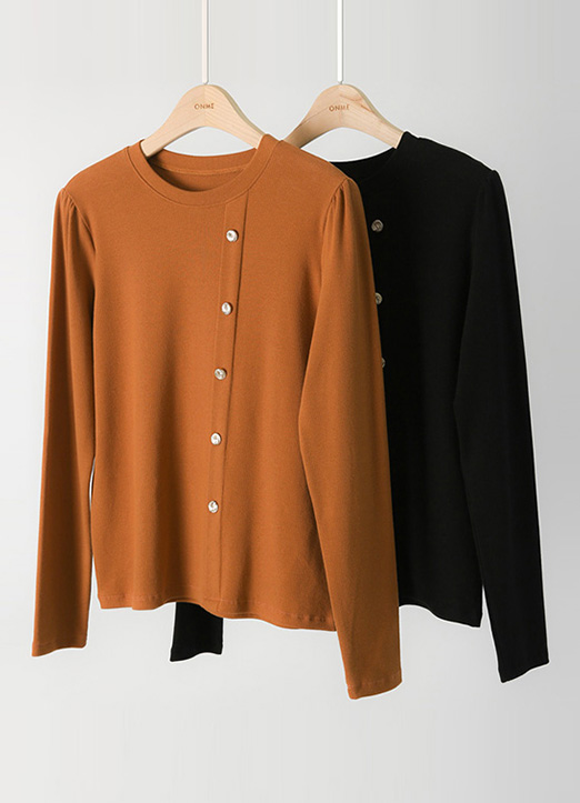[LouisAngel] アシメゴールド釦ポイントリブプルオーバー ts29058