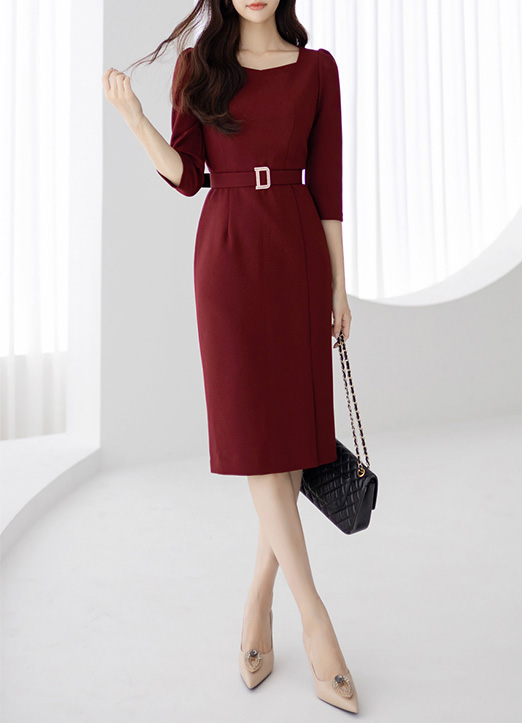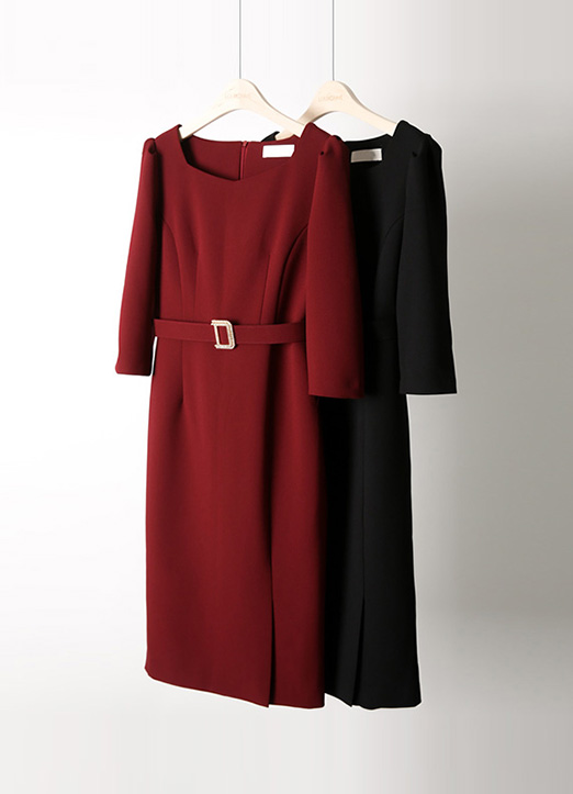 【S/M/L】スクエアネックサイドスリットワンピース op29086