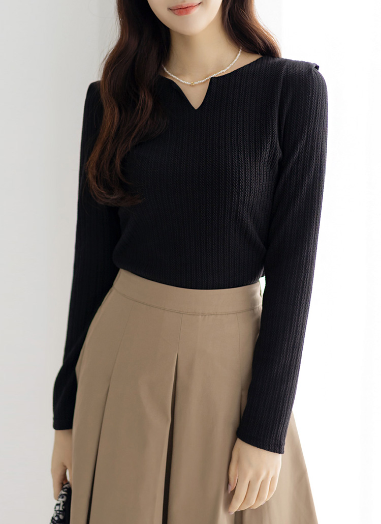 [LouisAngel] スキッパーネックリブTシャツ ts29090