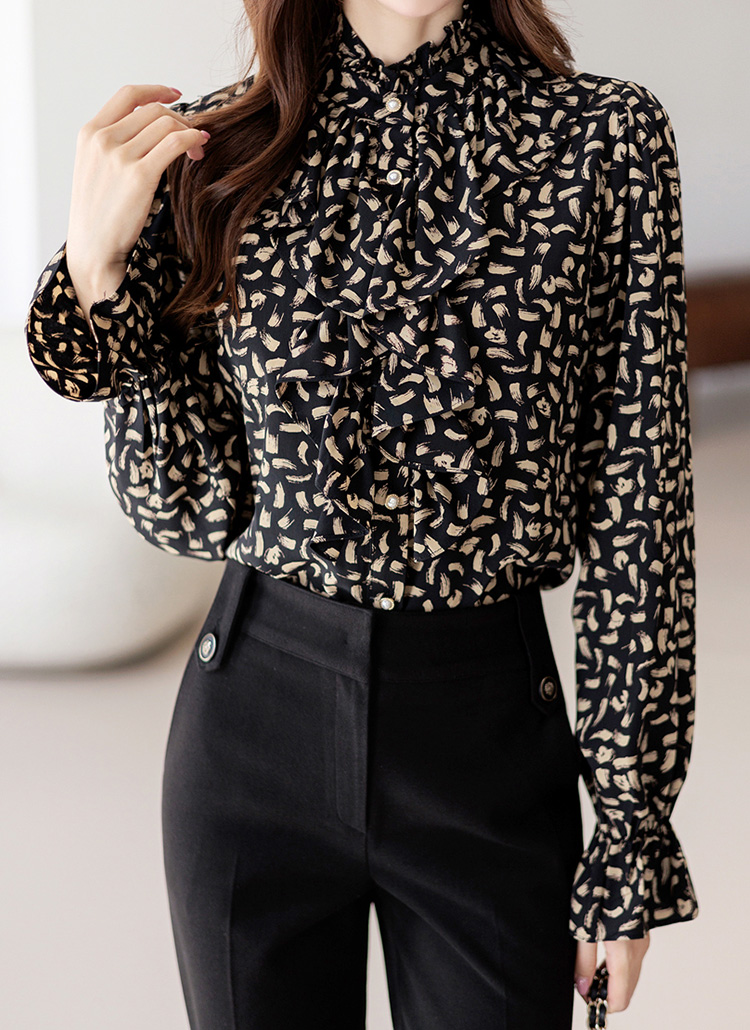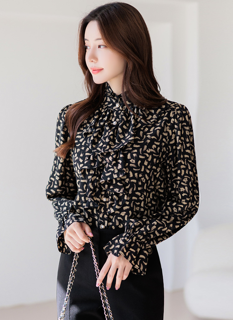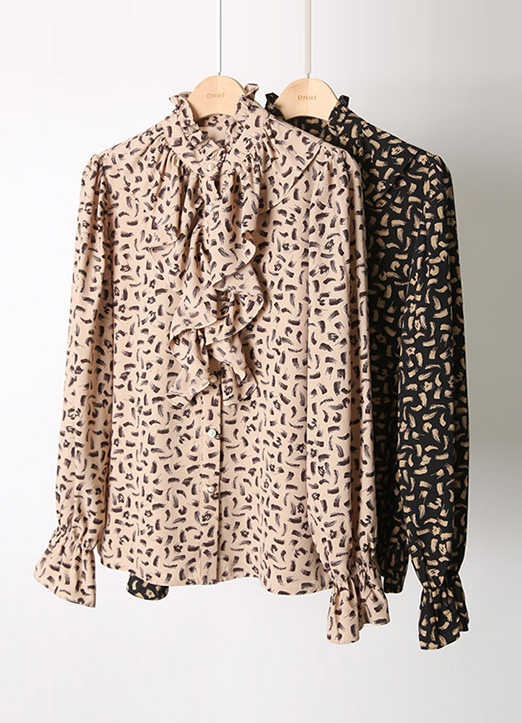 [LouisAngel] ペイントプリント フリルネック ブラウス bl29290