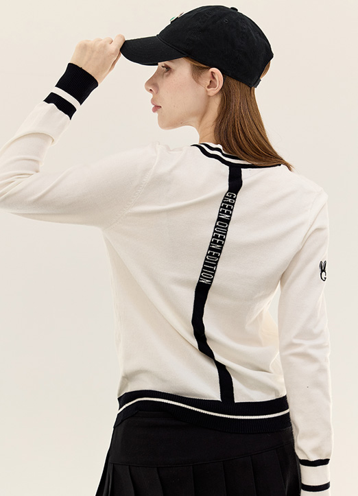[QoG] レタリングバイカラーニットカーディガン cd29322