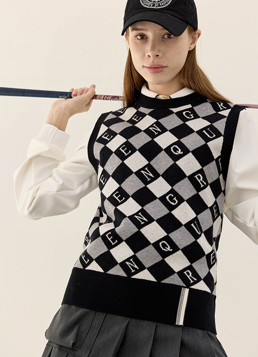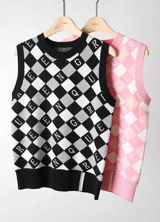 [QoG] レタリングチェックニットベスト29346