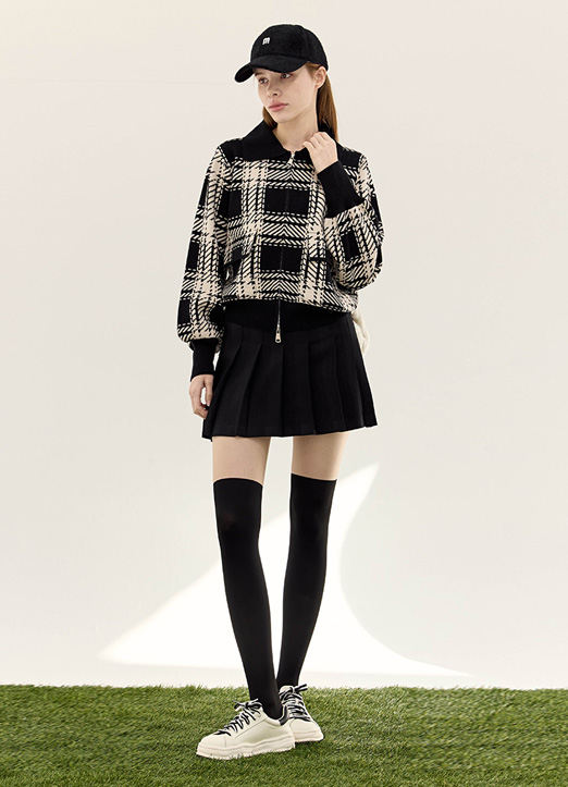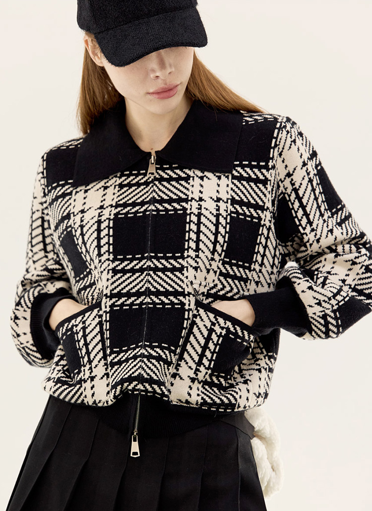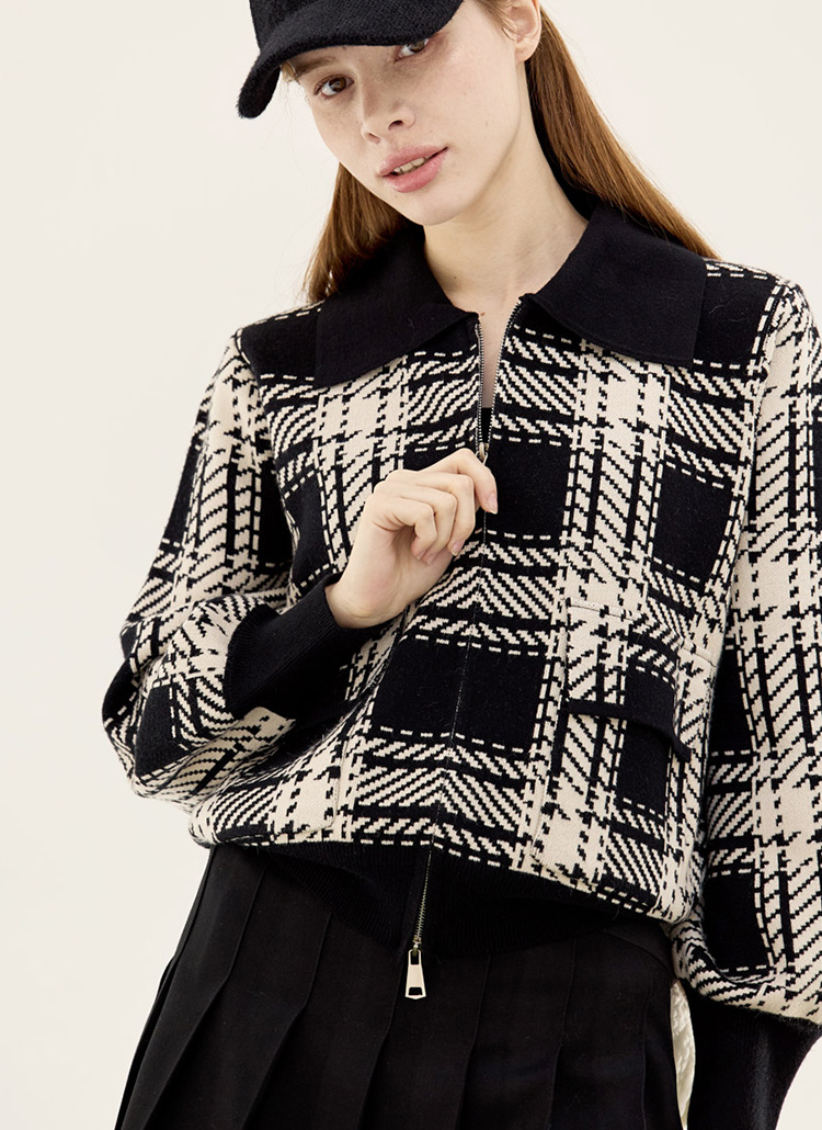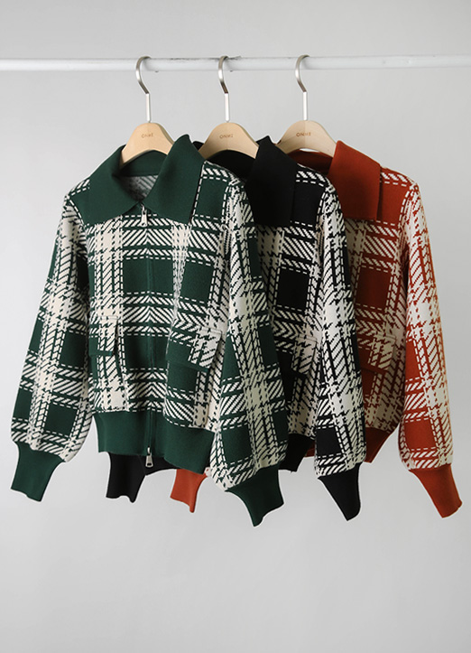 [QoG] タータンチェックジップアップニットカーディガン cd29350