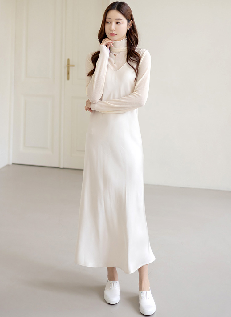 간절기에 활용하기 좋은 새틴 뷔스티에 원피스에요~