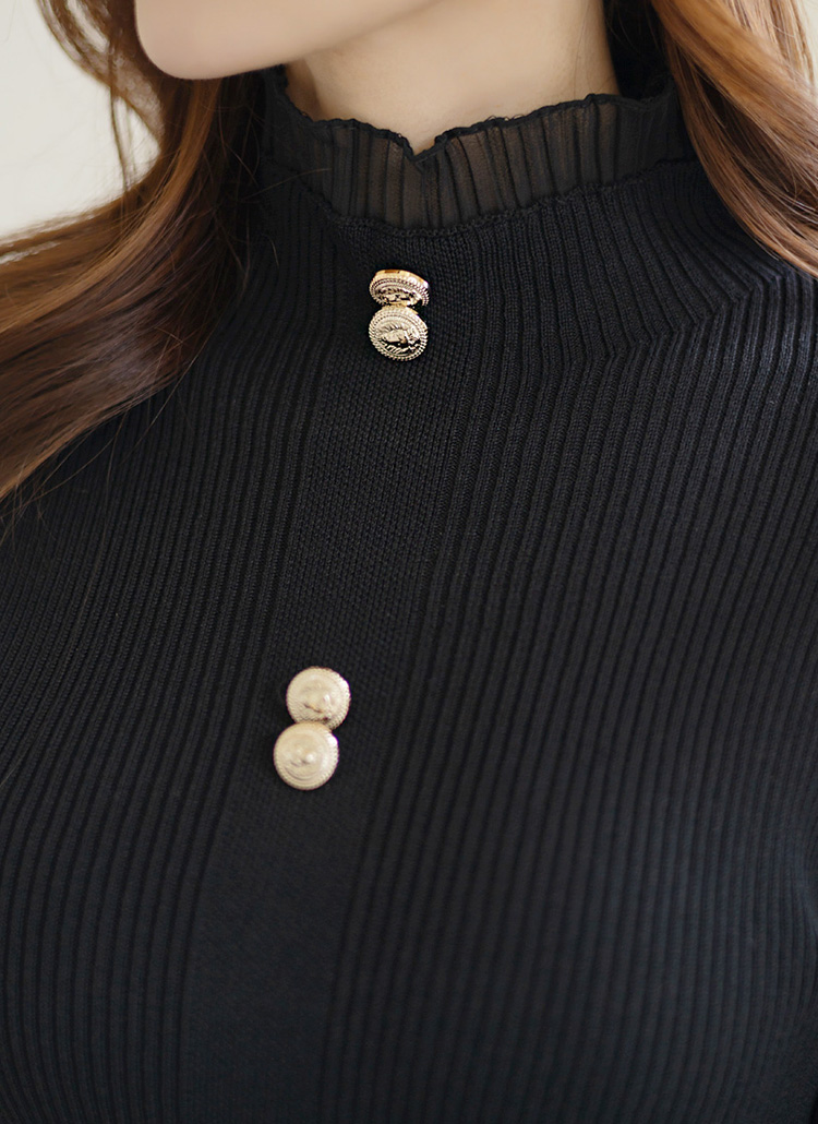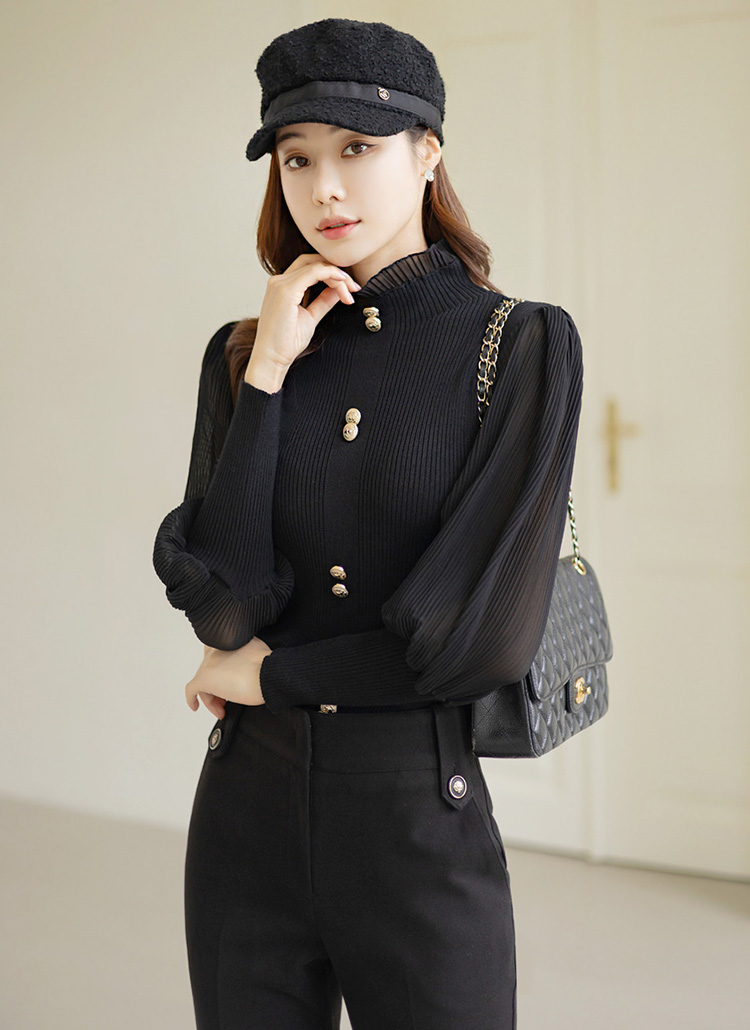 ゴールドボタン プリーツスリーブリブニットプルオーバー bl29697