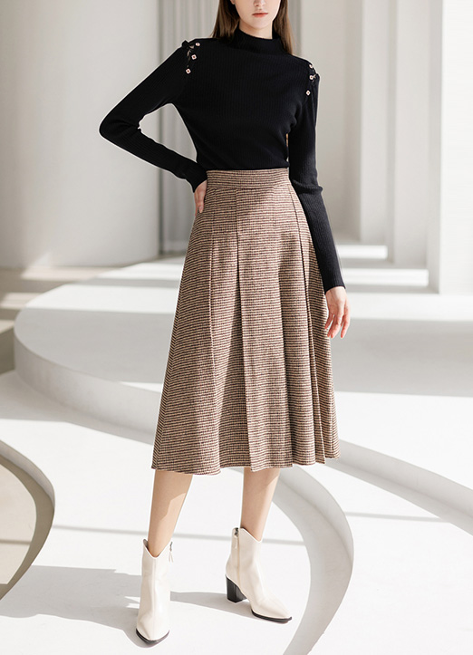 [THE ONME] ウールブレンド千鳥柄サイドスリットプリーツスカート sk29980