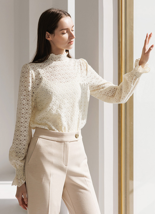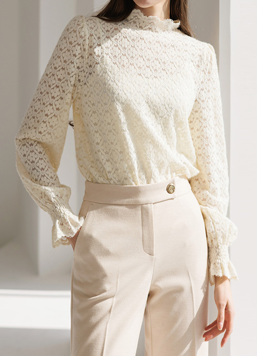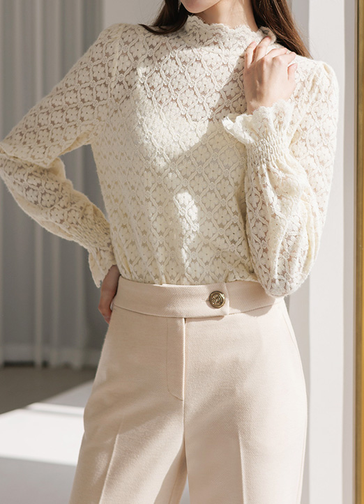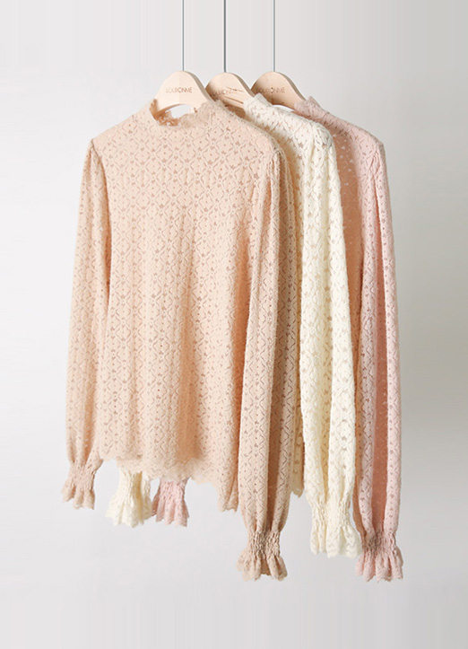 [THE ONME] スカラップハイネック フラワー起毛レースプルオーバー bl29992