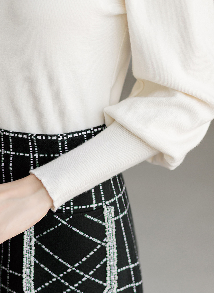 반폴라넥으로 답답함 없이 롱한 넥라인을 연출해주고