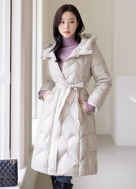 [LouisAngel] ハート柄キルティングウエストベルトロングコート jp30108