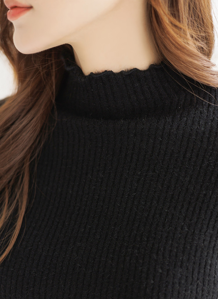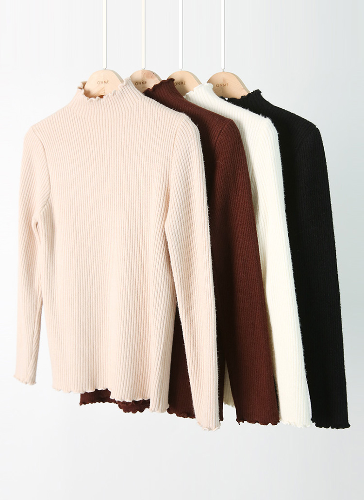 【4色展開】フリルハイネック シャギーリブニットプルオーバー nt30740